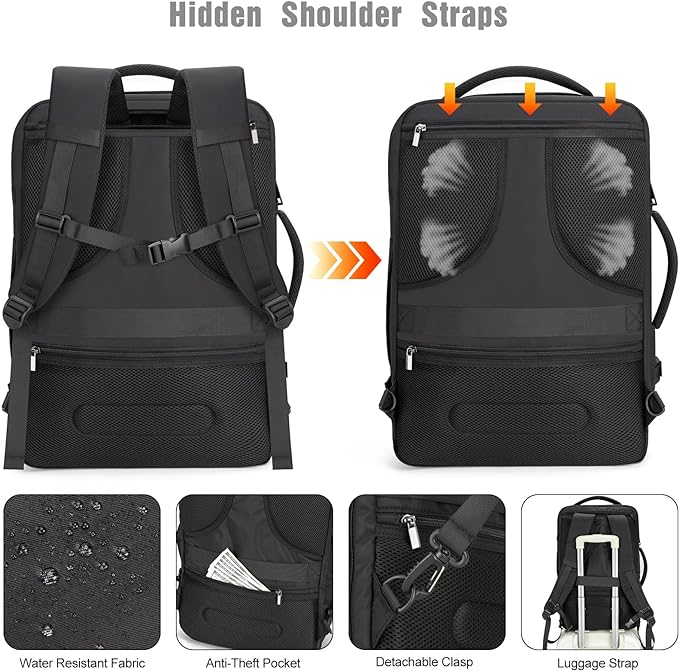 - [Comfortable & Sturdy] Backpack designed for travel with multi-panel ventilated padding, adjustable breathable straps and ergonomic design which relieve the stress of the weight on your shoulders. Equipped with an adjustable chest strap, provides a better wearing experience. The shoulder strap of the backpack can be hidden, The thick handle can be more convenient whether it is horizontal or vertical. It's the perfect gift for a trip/travel.