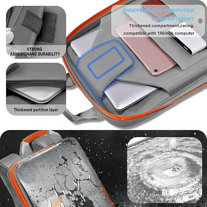 ZINZ Slim & Expandable Laptop Backpack 15.6 16 17 inch Travel Business Backpack Water-Resistant Daypack for Men and Women,Gray orange