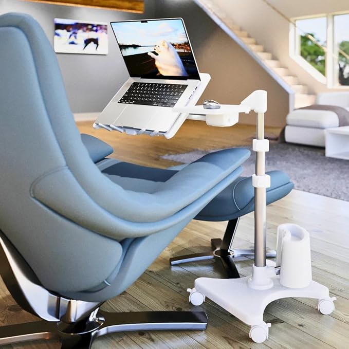 - WORK ANYWHERE IN YOUR HOME OR OFFICE – A premium ergonomic computer stand and rolling desk that lets you work comfortably from bed, sofa, office, or kitchen. Perfect for remote work, online classes, video calls, writing, sketching, or presentations. Adjusts instantly from sitting to standing height, improving posture and productivity anywhere in your home or office.