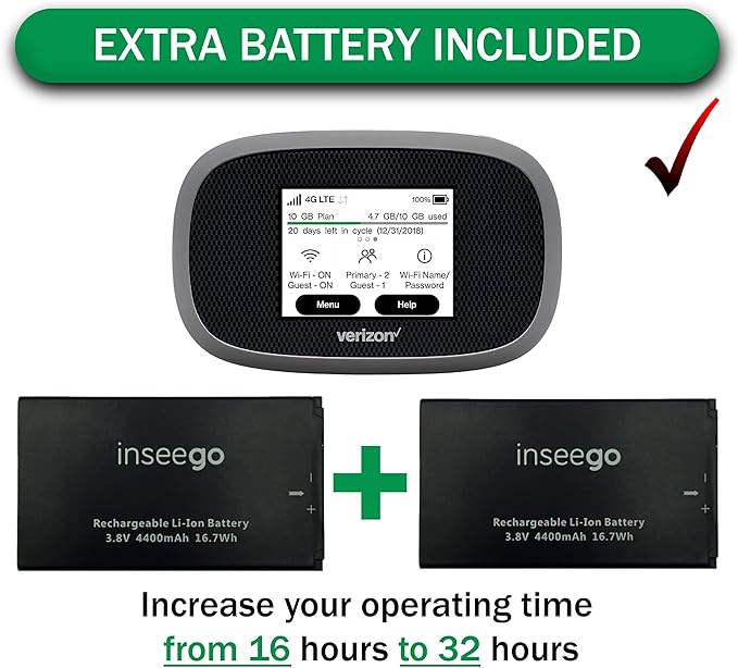 - Included Components : 2 external antennas and hard case, Hotspot Device with 1 Stock Battery and 1 Extra Battery, QC Charger with USB Type C Cable, Verizon sim card (requires data plan) 2 external antennas and hard case, Hotspot Device with 1 Stock Battery and 1 Extra Battery, QC Charger with USB Type C Cable, Verizon sim card (requires data plan)