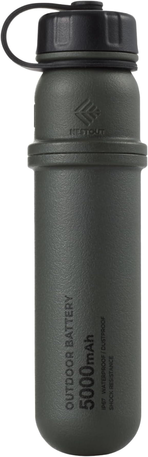 NESTOUT Rugged Power Bank, 5000mAh Outdoor Battery Pack, 15W USB C Fast Charging, Waterproof IP67, Durable Shockproof, Tactical Charger for Phone Military EDC Hiking Survival Camping (Olive Green)