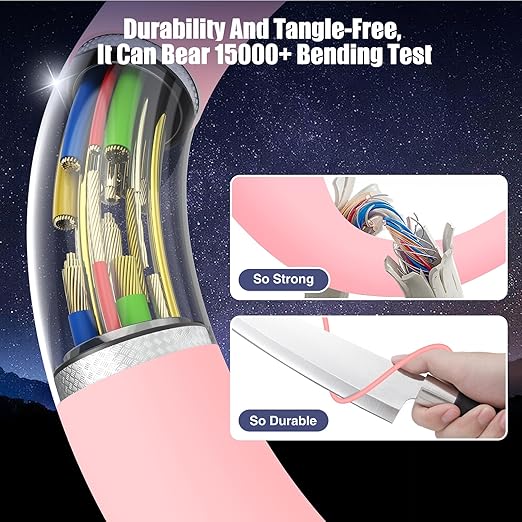 - 【What you get】 : 3 ×60W Pink (3.3FT+6.6FT+10FT) USB C to USB C Cable , 36-Month worry-free period, If you have any questions, please contact us for free, we will solve issues within 24 hours.