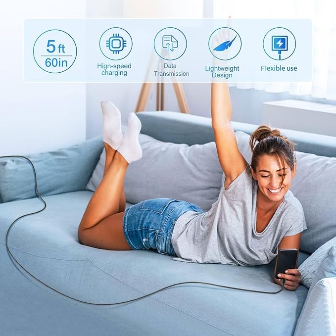 - 【sturdy and durable】: USB Ccharging cables are more sturdy and durable. Highly pure and thicker copper wires ensure maximum 3 Amps current and 480Mbps transfer speeds for your devices in 100% safe case. Length of 5FT, easy for charging on different occasion, for travel, home, car, office, etc.