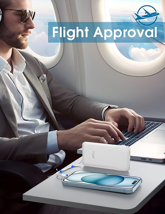 TG90° Portable Charger Power Bank with Built-in AC Wall Plug and Cables, 10000mAh USB C External Battery Charger Compatible with iPhone and Android Phones