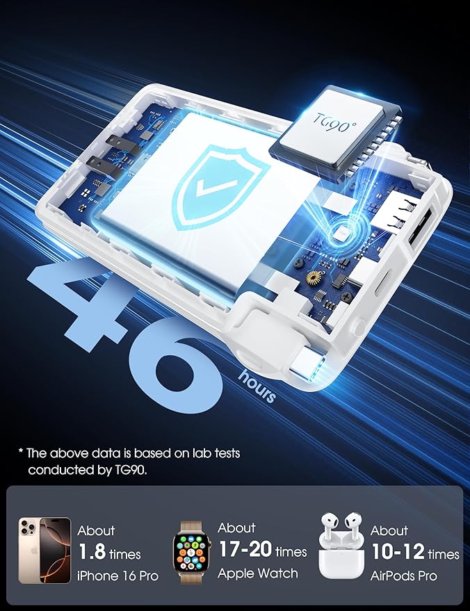 - Universal compatibility: Perfect portable phone charger, including multi-type cables, is widely compatible with 16/15/14/13/16Pro/15Pro/14Pro/16Pro Max/15Pro Max, etc, and most Android phones