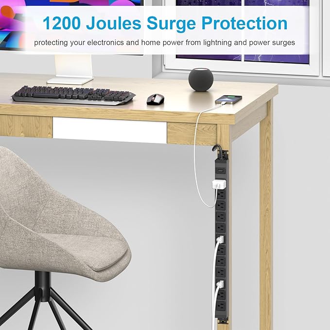 - Industrial Surge Protector: This power strip comes equipped with 1200J surge protector that safeguards your devices from sudden power spikes and fluctuations. The 3ft power cord provides sufficient reach to connect the power strip to a nearby outlet without any limitations. Surge protection and multiple outlets allow all devices to be plugged in with confidence.