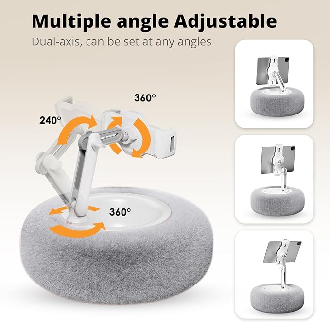 - 【Robust Adjustable Arm】Built stronger for stability! The dual-jointed arm includes metal core hinges and anti-slip knobs to securely hold heavier devices. Tighten effortlessly with the included Allen wrench for maximum strength—no wobble, even during extended use.