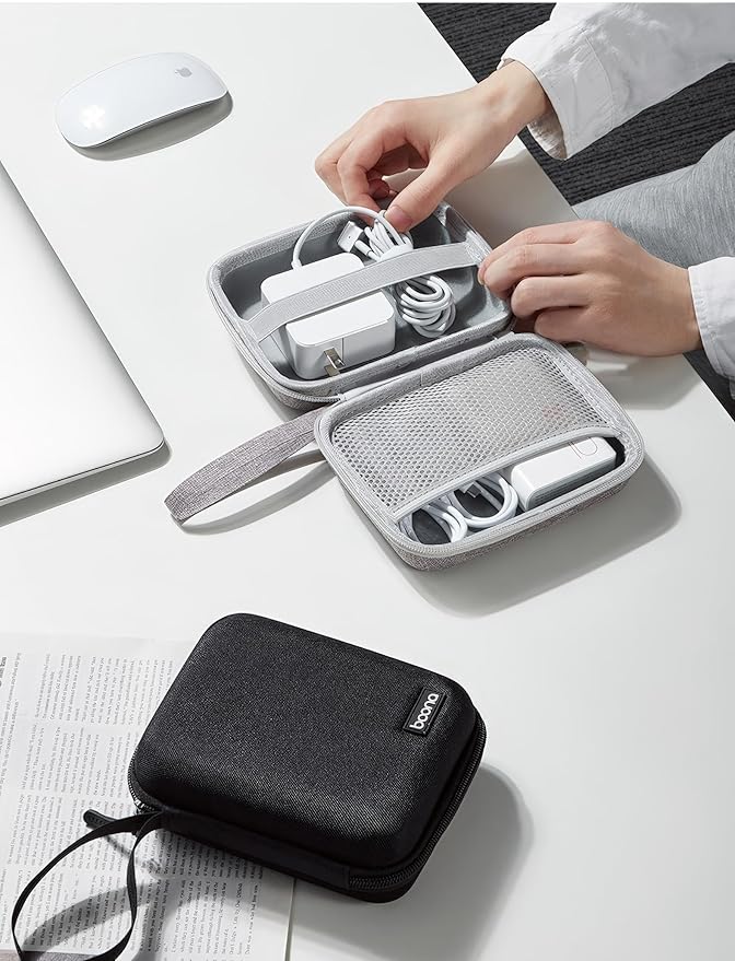 - 【SMALL STORAGE BAG】Compact Tech Bag to keep your MacBook charger and loose cables neatly organized. This electronic accessories travel organizer bag has enough room for electronic gadgets, such as earbuds, charging cords, blocks, power bank, hard drives, mouse, earphone, flash drives, SD cards, wall charger adapters, and more.