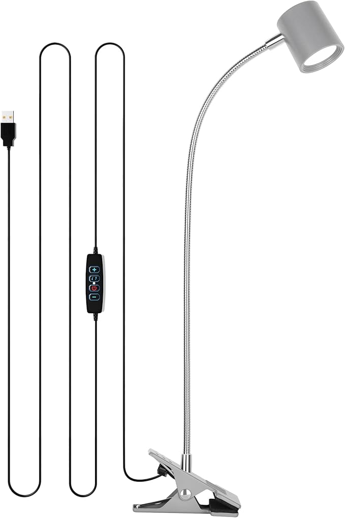 Dott Arts Desk Lamp,USB Clip On Light with 3 Color Modes,LED 10 Levels Brightness Reading Lamp, 360°Gooseneck Book Light,Eye-Care Reading Light for Home Office,Headboards Grey