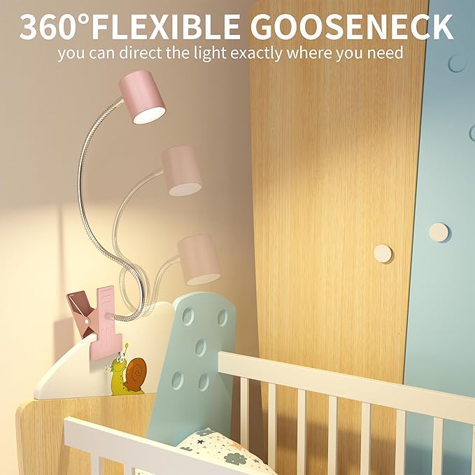 Dott Arts Desk Lamp,USB Clip On Light with 3 Color Modes,LED 10 Levels Brightness Reading Lamp, 360°Gooseneck Book Light,Eye-Care Reading Light for Home Office,Headboards Pink
