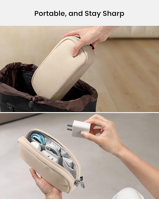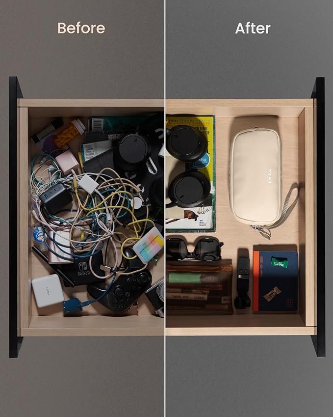 - Convenient & Portable: Designed for portability, the tomtoc tech and travel pouch keep your essentials organized and within reach, fitting seamlessly into a backpack, tote, or handbag, and can stand upright on a desk to grab items easily