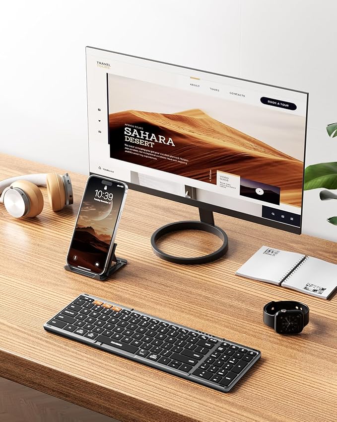 - 【Little Things & Big Convenience】 Samsers portable folding keyboard, only 9.3 ounces. Palm-sized keyboard can be folded up magnetically and put in your briefcase without taking up much space. Maximum convenience for you with minimum weight and size! Comes with a phone stand and a velvet storage bag, the perfect companion for a folding keyboard. Not just a keyboard, but a travel solution!