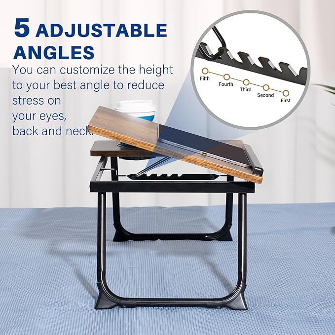 Laptop Desk for Bed Couch, Adjustable Foldable Bed Table with Cup Holder, Breakfast Serving Tray, Portable Laptop Lap Desk Stand for Working Reading Writing Eating Gaming in Bed Sofa Floor(RetroBrown)