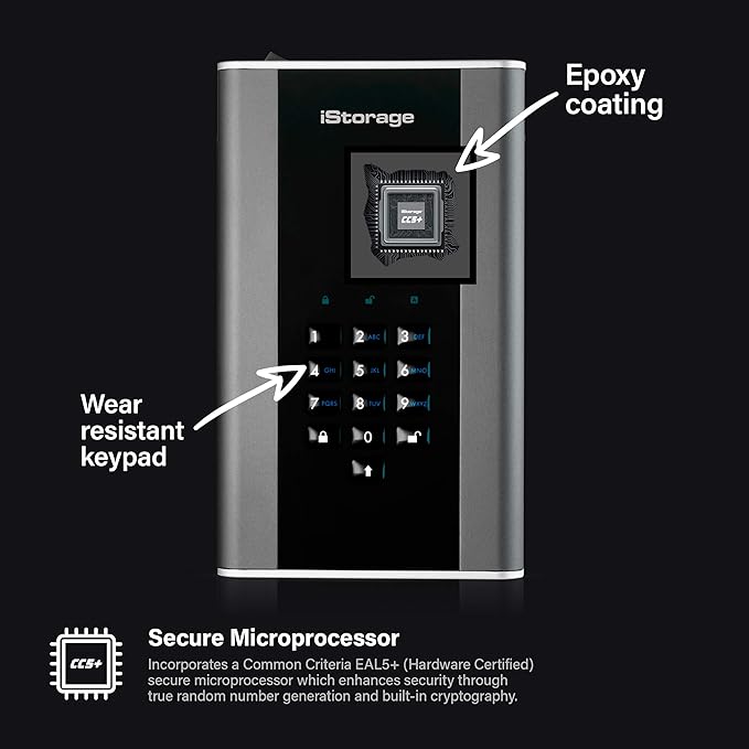 iStorage diskAshur DT2 256-bit 24TB | FIPS Level 3 Certified | Secure encrypted Desktop Hard Drive | Password Protected
