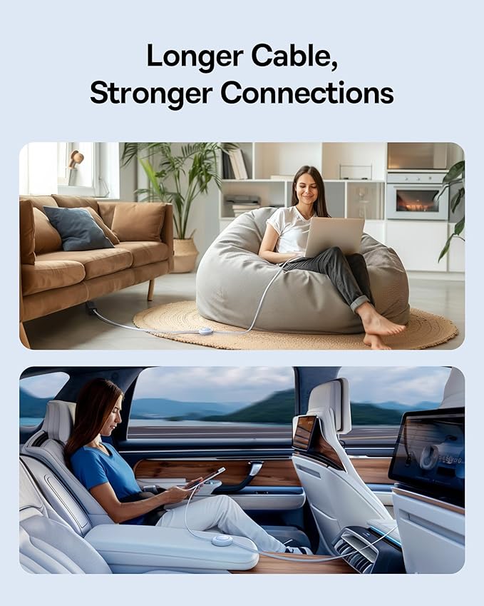 • Thin Out Your Bag: Weighing in at Just 116g, This Retractable USB C to USB C Cable Makes Your Charging Solution More Compact and Lightweight with Its Slim USB-C Charger Design.
