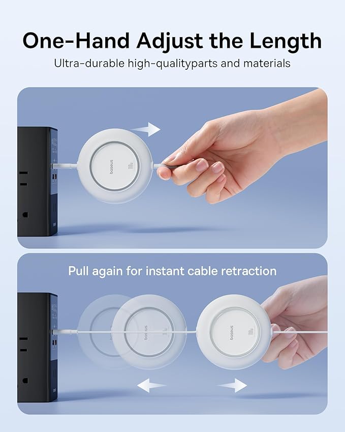 - Clutter-Free Desk Setup: Say Goodbye to Tangled Cables and a Messy Charging Environment. Pull the Retractable Type C Cable to Retract and Store for Ease of Storage.
