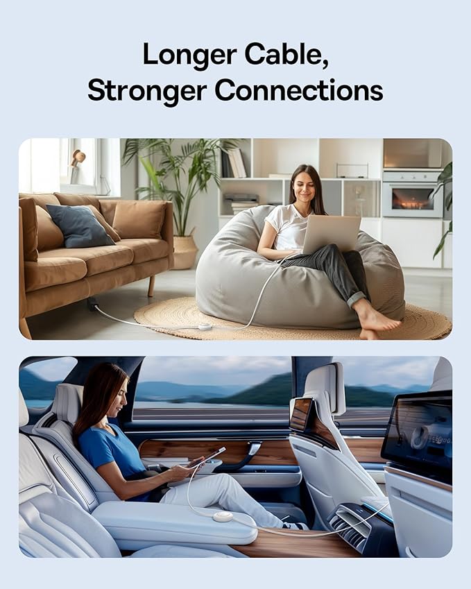 - Thin Out Your Bag: Weighing in at Just 116g, This Retractable USB C to USB C Cable Makes Your Charging Solution More Compact and Lightweight with Its Slim USB-C Charger Design.