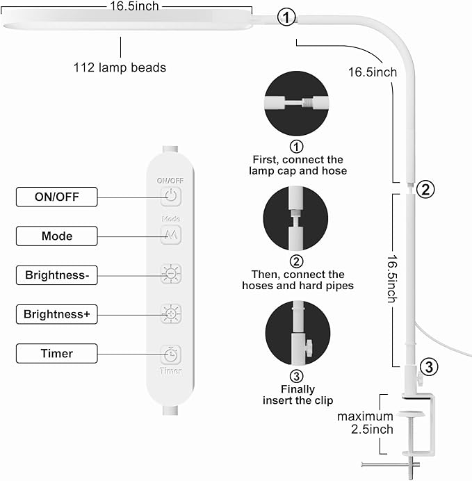 - Brightness: Set up a home office. SKYLEO clip on lamp with 1300 lumens(112 Pcs Lamp Beads), different brightness(3000~6000K) , And CRIβ₯90
