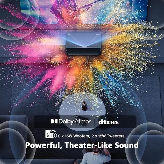 - 【Dolby Vision】The Aurora Pro is the only UST projector on the market that features Dolby Vision (DV), HDR10+, a native contrast ratio of >3000:1, and dynamic laser dimming. These features elevate the DV rendering to the next level with our improved tone-mapping algorithm.