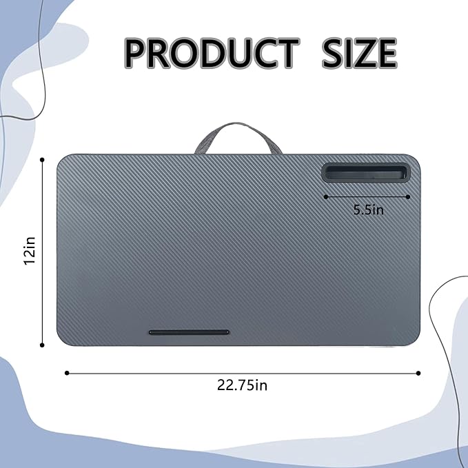- Dark Grey Lap Desk: The YUELAKE lap desk features a sleek Dark Grey design, adding a touch of elegance to your workspace while providing a comfortable and practical solution for using your laptop on your lap.