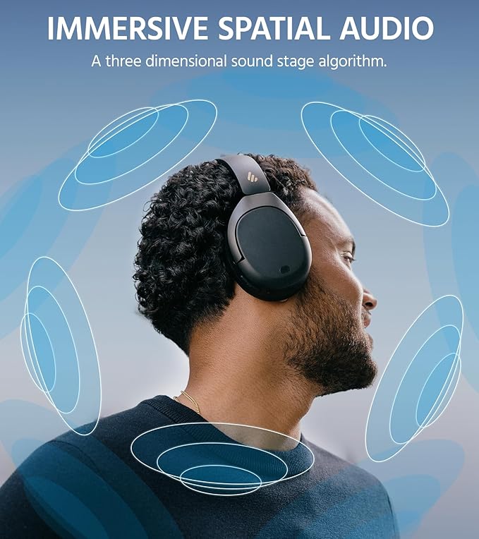 Edifier W830NB Wireless Over Ear Headphones with -45dB Active Noise Cancelling, 94H Playtime, LDAC Hi-Res Sound, Spatial Audio, Fast Charging, Multipoint Connection, Bluetooth V5.4 - Black