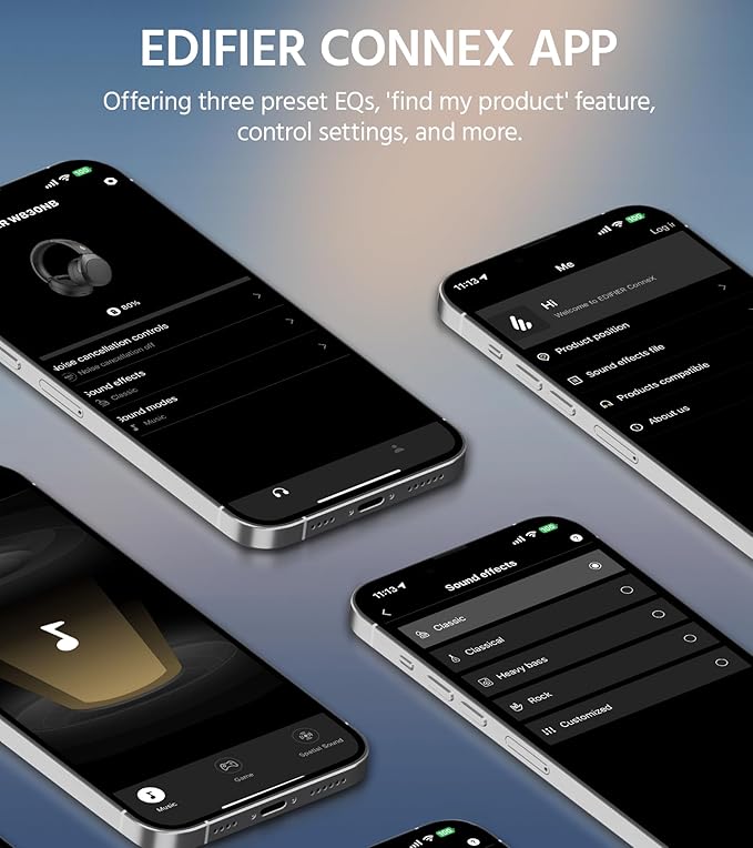 - [Customizable Settings]:There are three preset EQs in the EDlFlER ConneX App which also support custom EQs for a personalized listening experience.