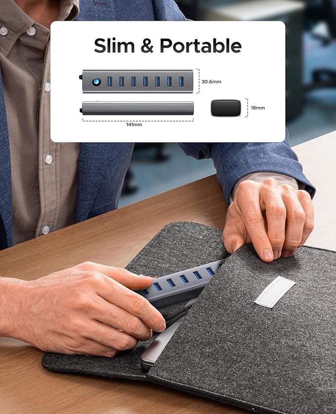 - 【High-Quality Material】This USB 3.0 hub is built with a high-quality aluminum alloy casing and equipped with a high-performance host chip, ensuring stable and efficient data transfer; Additionally, it features an integrated surge protector, making it lightweight, moisture-resistant, and corrosion-resistant, with a longer lifespan