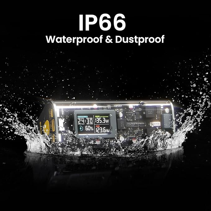 - 【IP66 Water Resistant】The First IP66-rated high-power portable charger on Amazon. Tough against dust and water. Note: It's not designed for immersing in water or underwater adventures