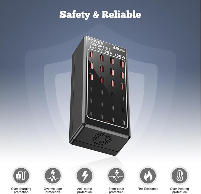 - 🔋【MASS CAPACITY】 This charging station features 24 high-speed USB ports including 12 USB Type-A and 12 USB-C ports, allowing you to charge up to 24 devices simultaneously.
