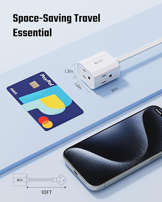 - 3-WAY OUTLETS: Transform a single outlet into three with this mini power strip, featuring 3 grounded outlets on 3 sides to prevent plug interference. Ideal for home,cruise, office, dorm, or hotel use. Available with 1.5ft, 3ft, 6ft, 10ft, 15ft options.