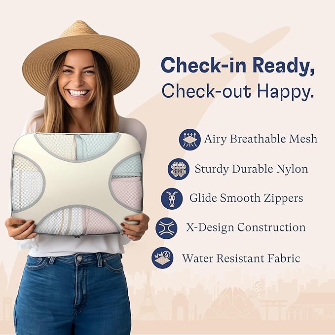 - Easy Clean Material – Watch liquids glide smoothly off your packing cubes making it easy for cleaning. Accompanied by smooth snag free ergonomic zipper pulls, pack your way through any travel adventures while resting assure your packing cubes are made from the best material.