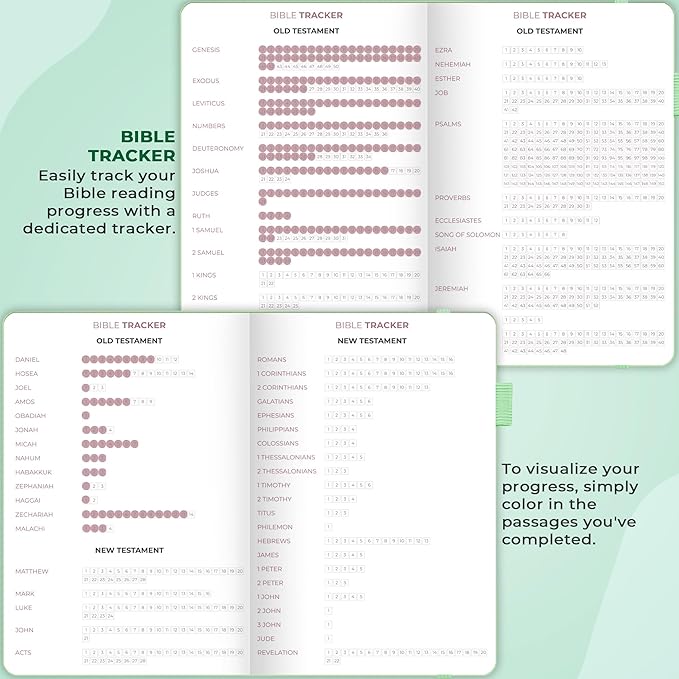 - MONITOR YOUR BIBLE READING PROGRESS – A dedicated reading tracker included in this notebook for Bible notes will help you track your reading progress easily. To use it, simply tick off each verse you complete.