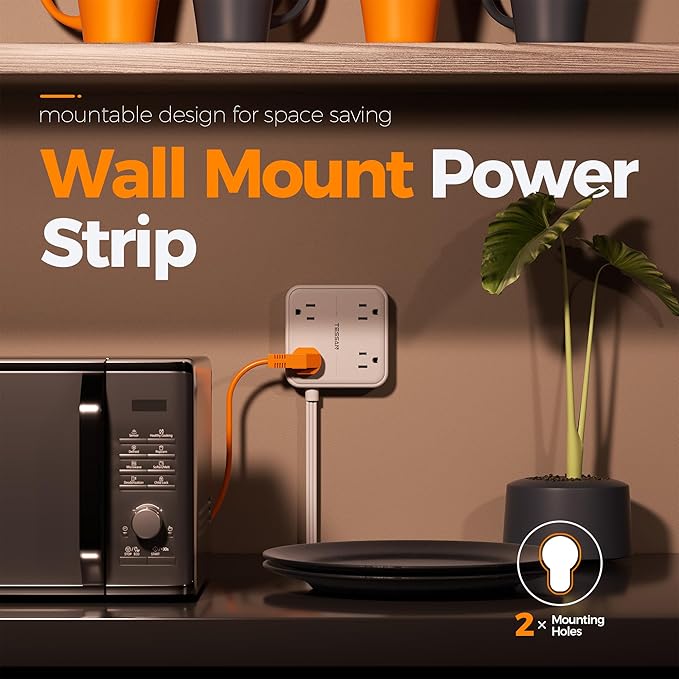 - Mountable Power Strip: 2 mounting holes design allow this 5 ft extension cord securely installed in various applications, such as workbenches, wall mounts, floor mounts, under counters and more; 4 rubber feet at the bottom efficiently keeps it from slipping and sliding