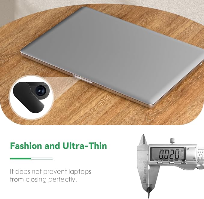 - Ultra-Thin Design: Measuring only 0.4MM/0.015IN, this webcam cover is compatible with ALL laptops and tablets, achieving a seamless look without interfering with the functioning of your device.
