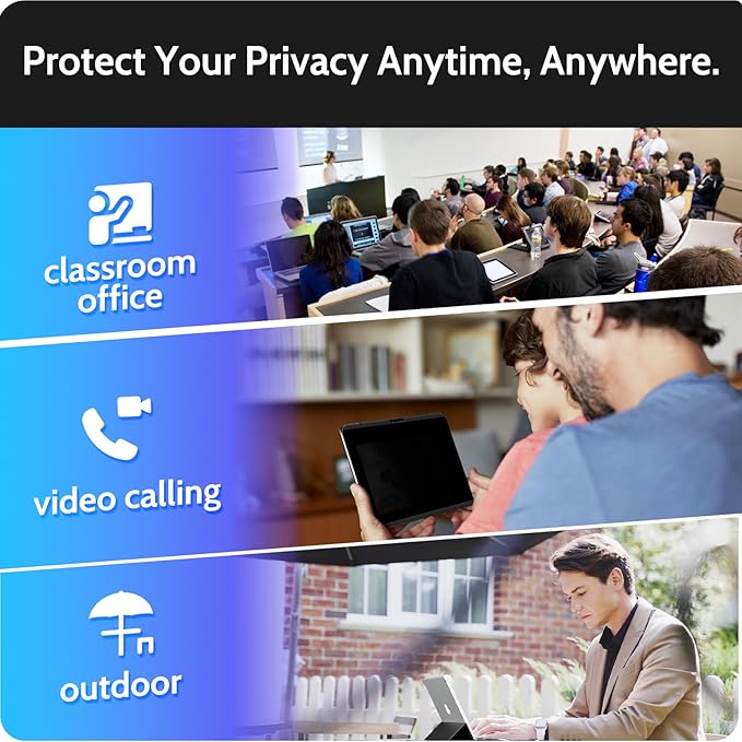 - 【28 ° TRUE ANTI-PEEP】Thanks to Peslv's self-developed, leading-edge anti-peep technology, The iPad air 13 inch privacy screen protector can ensure that the contents of the iPad screen are invisible to the line of sight beyond 28 degrees. protect your iPad screen privacy, so you don't have to worry about information leakage in public. Note: This style only supports horizontal anti-peep, and does not support vertical anti-peep.