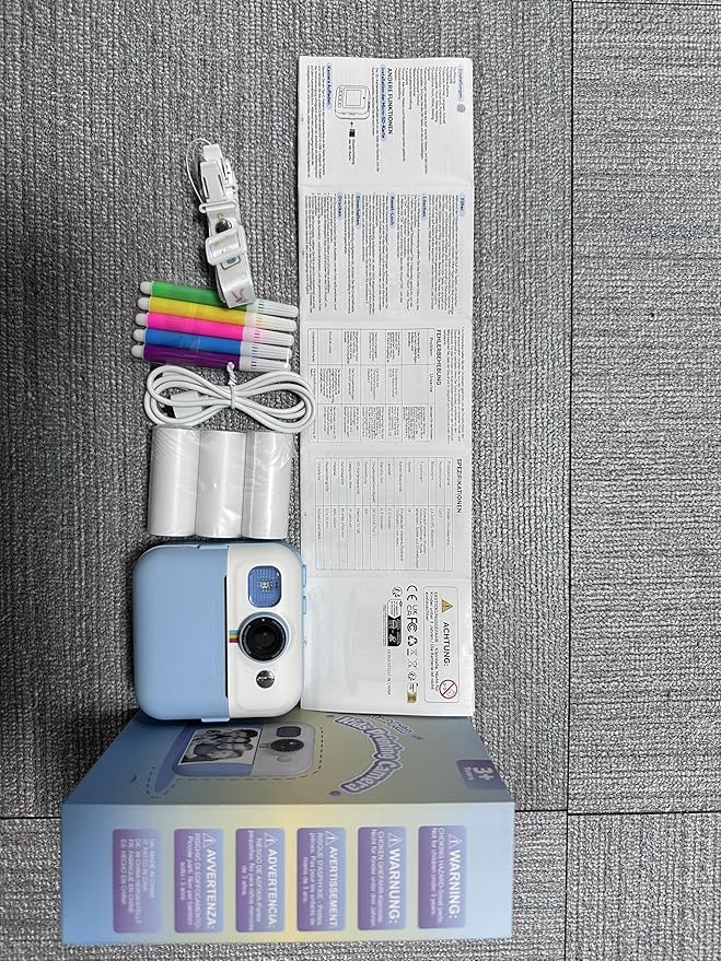 - 1500mAh POWERFUL BATTERY & 32GB CARD: The kids camera instant print is equipped with 1500mAh rechargeable battery, it can be used for approximately 4-6 hours on a full charge. The included 32GB card ensures ample storage space for thousands of photos and videos, allowing kids to document their memories without any worries. You can easily transfer files by connecting the print camera to a computer using the provided USB charging cable.