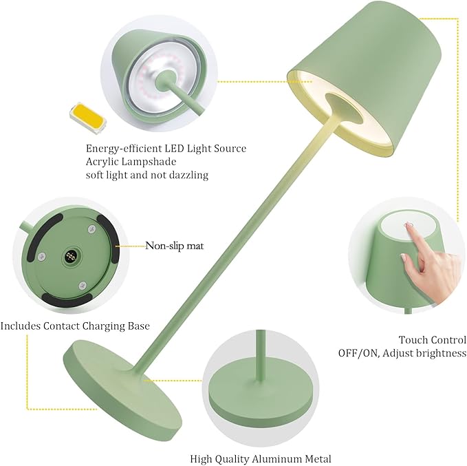 - 4*Minimalist Design : Portable battery cordless table lamp, Strong and lightweight aluminum material, elegant minimalist design, 360 degree lighting.slender metal arms with matte shadows make it look stylish, could easily match the various home decor.Ideal light source for all areas like bedroom, living room, office, kids room, coffee shop, bar. Suitable for Indoor&outdoor.