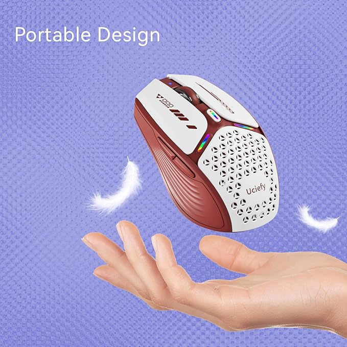 Uciefy Bluetooth Wireless Mouse, (BT5.0/5.1+2.4GHz) USB C Rechargeable LED Mouse Battery Level Visible, Honeycomb Magnetic Shell Cover with USB Receiver & Type-C Adapter for Laptop/PC/Mac/iPad-Red