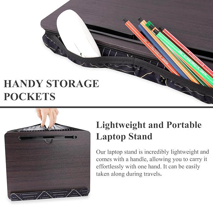 - Lightweight and Portable for Easy Travel: Weighing only 2lbs, our lap desk is easy to carry with its storage pocket that doubles as a handle. Work from anywhere, whether it's home, office, dorm, school, bed, or sofa.