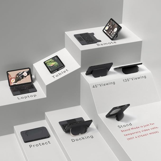 - 🧲【Magnetic detachable keyboard】- eiP Magnetix keyboard case securely attaches to the protective case using a strong magnetic strip. You can detach and store the keyboard separately, leaving the case and back stand. This setup allows you to place the Pixel Tablet on your lap for reading, watching videos, or drawing. Switching between Tablet and Laptop modes becomes effortless.