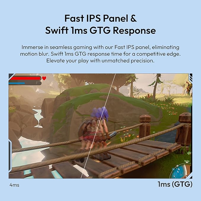 - Lightening-Fast 1ms Response time - See your actions come to life instantly with a remarkable 1ms response time. No more frustrating ghosting or trailing, just pure, unadulterated speed that gives you the edge in competitive gaming.