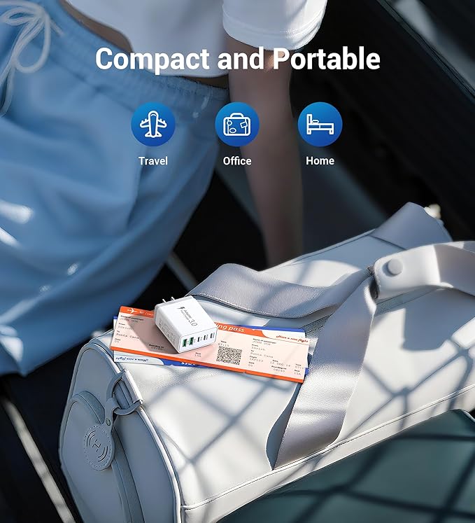 - 2-Pack 60W Fast Charging Block: 5-Port PD Fast USB C Charging Block featuring 3 USB-C ports and 2 USB-A ports for efficient charging. This usb charging block offers Power Delivery and Quick Charge 3.0 technology, delivering a total power output of up to 60W. The USB-A port provides 3.1A/5V output, while the USB-C port offers a rapid 20W charging speed. It can charge your iPhone 16/15/14 devices from 0% to 50% in just 30 minutes. Ideal for charging iPhone, iPad, MacBook, Samsung, tablets.