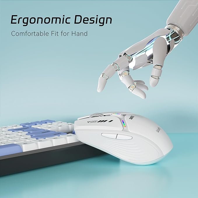Uciefy V19 Wireless Mouse, 2.4GHz Rechargeable Mouse LED with Battery Indicator, Magnetic Computer Mice with USB Receiver & Type-C Adapter for Laptop/PC/Mac/Chromebook-White