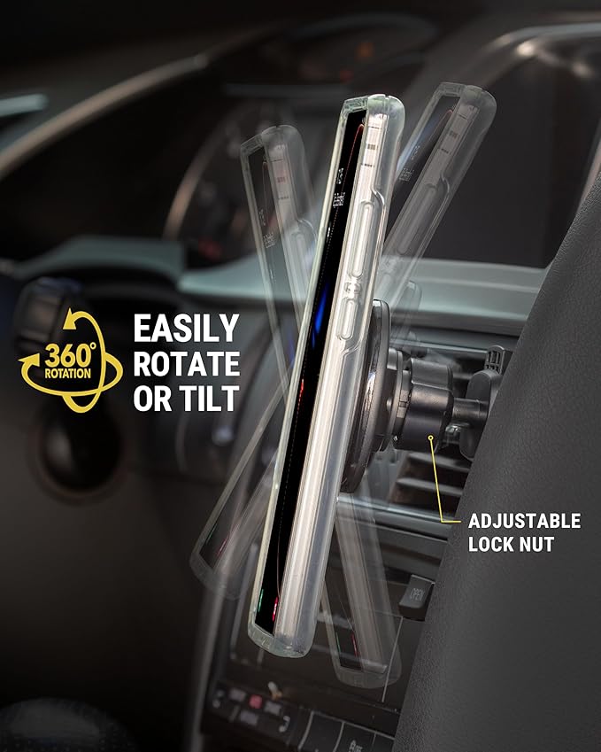 - 2-in-1 MagSafe Car Mount: Elevate your driving experience with our versatile magnetic car phone holder. Opt for the MagSafe phone mount for car dashboard or use vent clips for an unobstructed view and a stable hold in your car air vent. This Hands-free cell phone holder seamlessly adapts to your needs, ensuring the ultimate in-car phone stand experience.