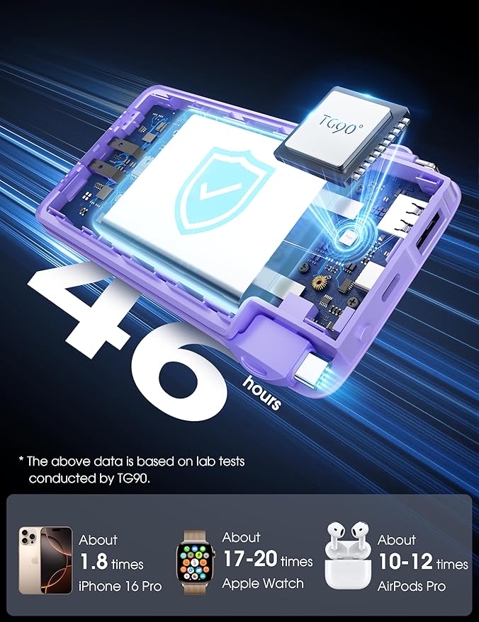 TG90° Portable Charger,10000mAh Power Bank Built-in Cables and AC Wall Plug,USB C Portable Bank,Travel Essentials Phone Charger Compact External Battery Pack Compatible with iPhones,iPad, Samsung