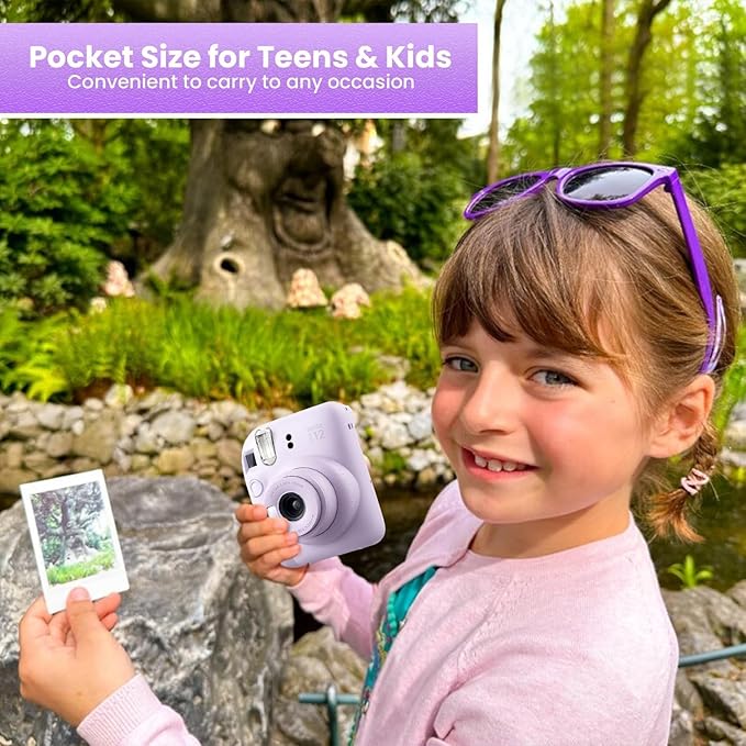 Fujifilm Instant Mini 12 Instant Camera + BluebirdSales Accessory Bundle & Custom Case + Fuji (20 Shots) Film + 5 Color Lens Filters + Mini Frames Designer Mini Photo Album (60 Pockets) (Lilac Purple)