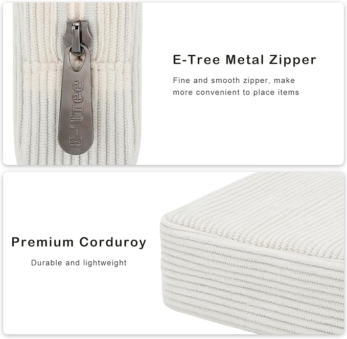 E-Tree Cute Small Makeup Bag,Cosmetic Toiletry Make up Little Items Pouch for Purse,Zipper Mini Tech Charger Cable Electronic Organizer Case,Travel Accessories for Women Men Teen,White Corduroy