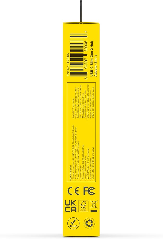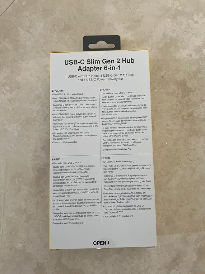 EZQuest USB-C Slim Gen 2 Hub Adapter 6-in-1 1 USB-C 4K/60Hz Video, 4 USB-C Gen 2 10Gbps, and 1 USB-C Power Delivery 3.0