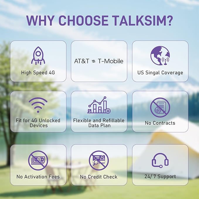 - Nationwide Networks 4G Coverage: Make signal around you. TALKSIM data only SIM card provides high speed 4G LTE network, connecting you with top dual American cellular carriers AT&T, T-Mobile. This USA SIM card will auto select the best carrier for a stable signal, ensuring you have access to the full power of the nationwide data network no matter where you go. By using this prepaid data SIM card, you will experience seamless connectivity throughout the USA.