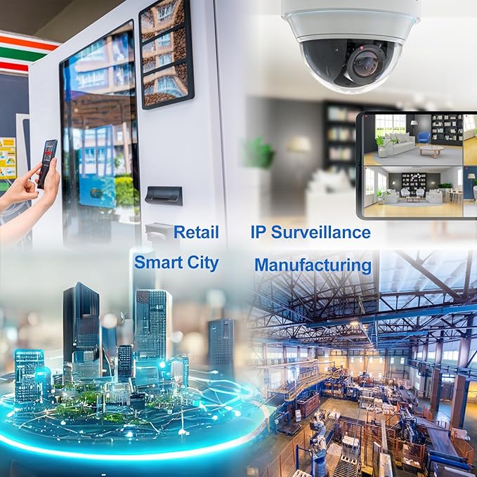 - Industrial Design: DIN-rail mount, fanless, standard operating temperature (-10 to 60°C), IP40 protection, CE/FCC/UL certified.